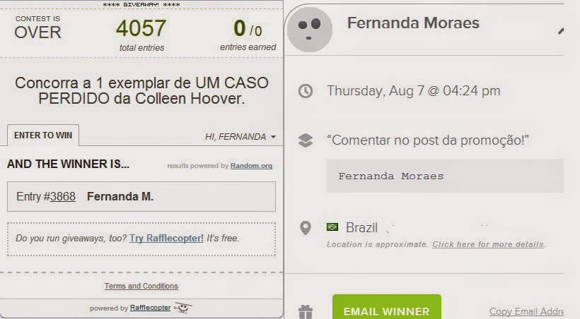 ganhadoras que têm 2 dias para entrar em contato e enviar os dados para envio